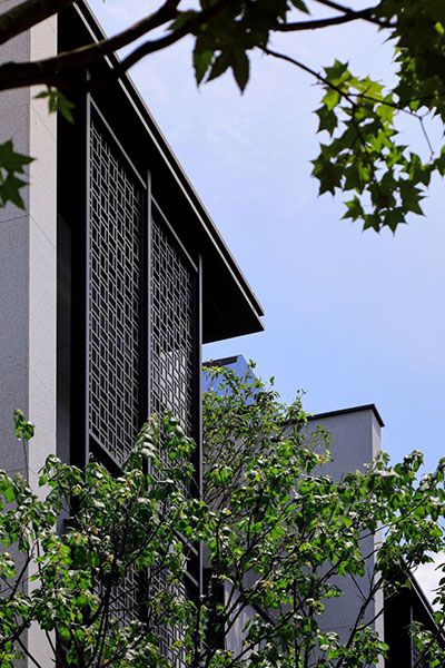 素雅白馬石搭配窗花勾勒出的光影,讓恬靜的住宅環境也能有奔騰氣勢